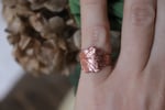 Anello con vera piccola foglia di rovo fissata su base ad anello, non regolabile, alta 5 mm ed elettroformata in rame, con finitura leggermente ossidata ma comunque brillante, con venature in risalto.
