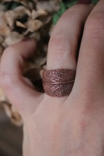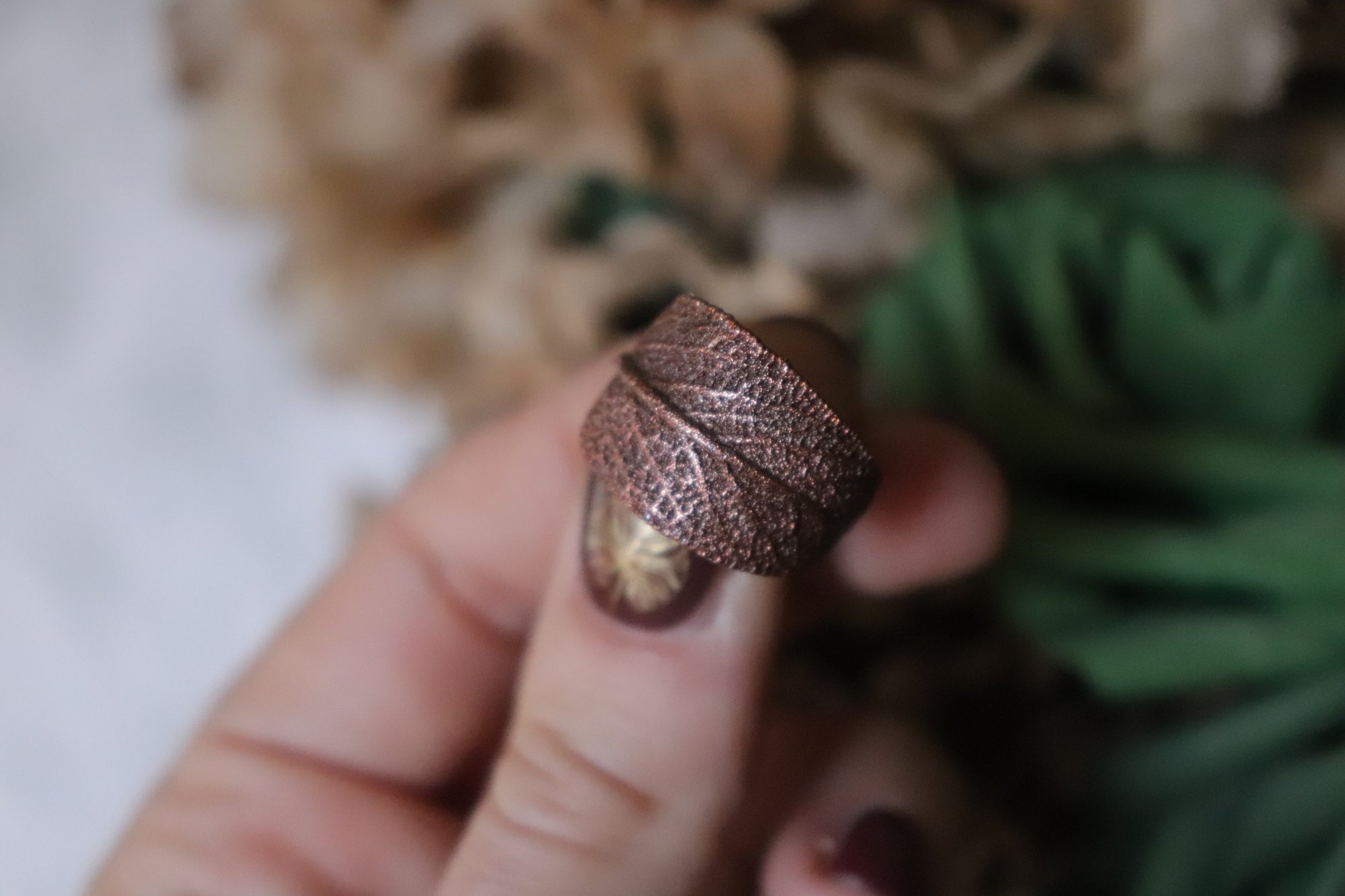 Anello con vera foglia di salvia elettroformata in rame e patina ossidata, taglia 13