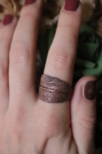 Anello con vera foglia di salvia elettroformata in rame e patina ossidata, taglia 18