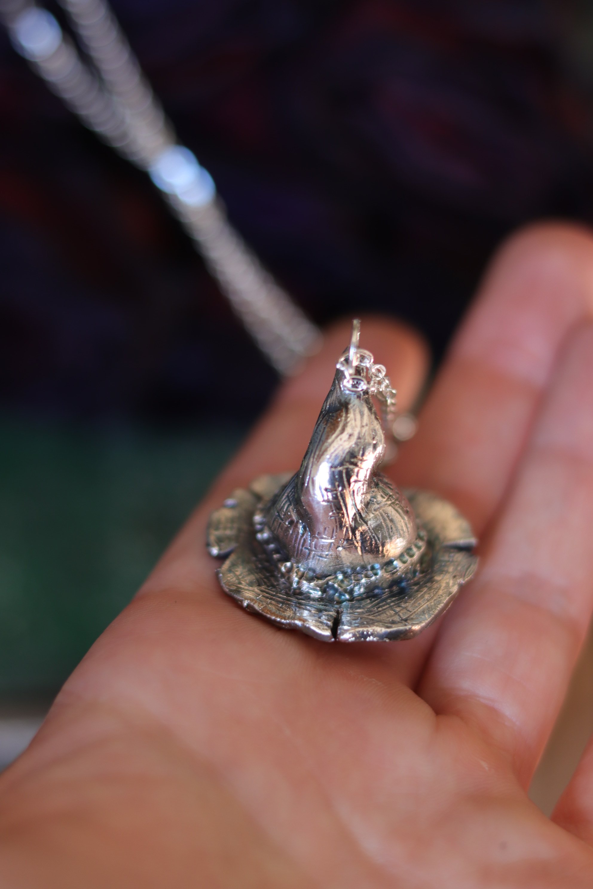 Un gioiello per celebrare l'anima stregata di chi lo indossa, questo cappellino è stato modellato interamente a mano e poi elettroformato e rivestito in argento.
