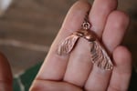 Questo gioiello unico è stato creato partendo da una vera samara di acero, contenuta al suo interno e rivestita di rame mediante elettroformatura. la finitura è ossidata con venature in risalto e il tutto protetto successivamente per prevenire ulteriore ossidazione.