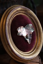 Questa cornice antica, così come la foglia-spilla, è un pezzo unico, nato dall'idea di unire la passione per l'antiquariato e il restauro con quella del gioiello botanico, per dare vita ad una collezione capace di soddisfare anche le/gli amanti dell'home decor in stile "Masca" :D