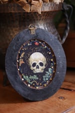 Cornice 22 in legno dorato con spilla foglia di rovo dipinto e retro "teschio"