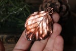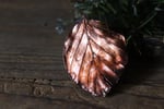 Questo gioiello unico è stato creato partendo da una vera foglia di faggio, contenuta al suo interno, e rivestita di rame mediante elettroformatura.