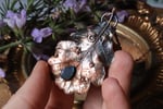 Collana con vera foglia di quercia elettroformata in rame con patina sfumata blu e labradorite