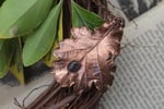 Questo gioiello unico è stato creato partendo da una vera foglia di quercia, contenuta al suo interno, e rivestita di rame mediante elettroformatura.