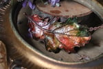 Collana con vera foglia di quercia racchiusa nel rame con patina autunnale