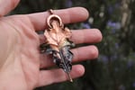 Questo gioiello unico è stato creato partendo da una vera foglia di quercia, contenuta al suo interno, e rivestita di rame mediante elettroformatura.