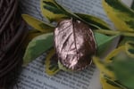 Questo gioiello unico è stato creato partendo da una vera foglia di rosa, contenuta al suo interno, e rivestita di rame mediante elettroformatura.
